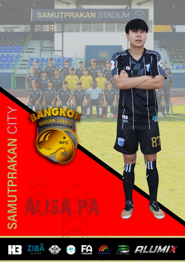 Follow Me ALISA LAKPINIJ BSL Team2023-03-19T01:00:04+00:00 Forward Age: 28 Nationality: Thai Position: Forward Shirt Number: 87 Personal Goal: Aim to do well in Thai Women League and get noticed to win contract to play professional football Buy My ShirtFollow MeMeet the PlayerSponsor Me