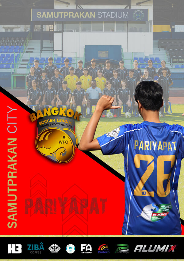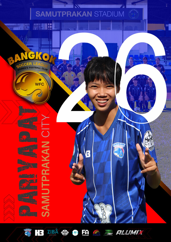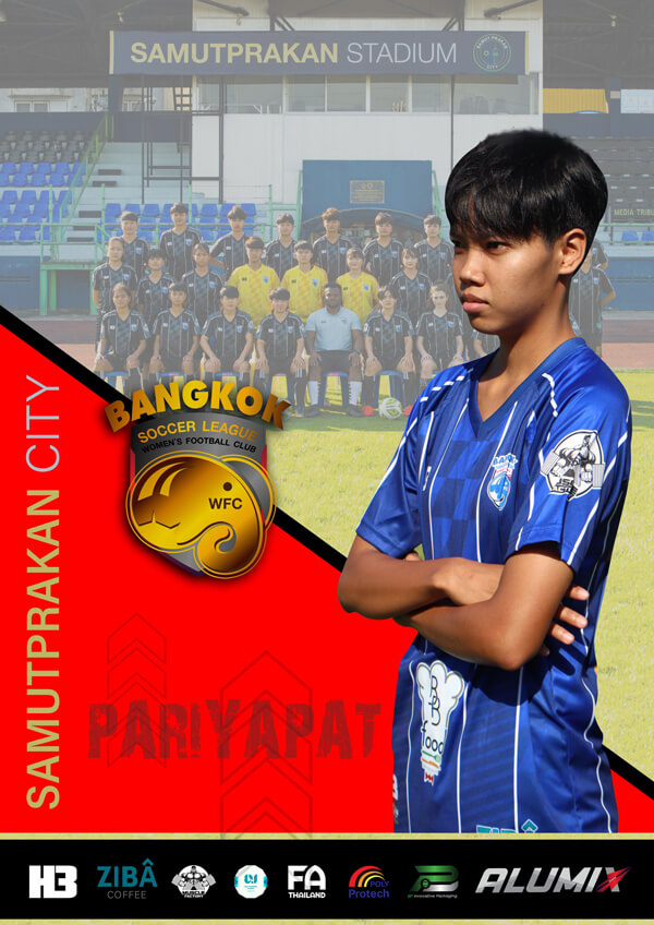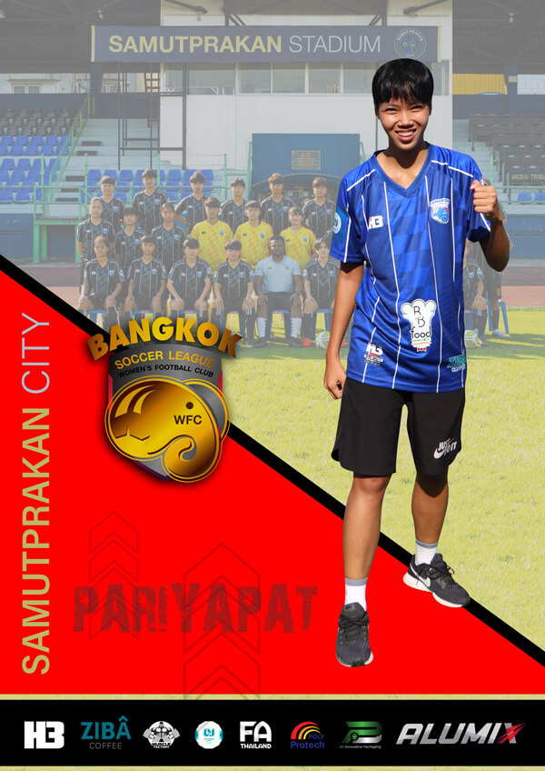 Follow Me PARIYAPAT KAKKAEW BSL Team2023-06-07T16:55:54+00:00 MIDFIELDER Age: 23 Nationality: Thai Position: Midfielder Shirt Number: 26 Personal Goal: Aim to do well in Thai Women League and get noticed to win contract to play professional football Buy My ShirtFollow MeMeet the PlayerSponsor Me